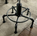 Tall, dark and handsome has a new meaning thanks to this daring two-tone dining set. Warm wood veneer is balanced as sand black coloring add sleek finishes to the metal framework. The pipe-inspired design adds edgy industrial tones while hand-painted copper delivers a rustic touch. Rest easy on the curved back chairs and kick your legs up for additional comfort.