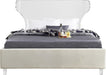 There's nothing scary about the Ghost cream velvet queen size bed, with its plush cushioned and upholstered side rails and footboard. A curved transparent acrylic headboard allows you to situate it in front of a window without blocking the view, and matching acrylic legs offer a beautiful contemporary appearance. This bed has a complete set of slats included for your convenience, so you won't need to purchase a box spring.