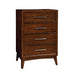 Gorgeous lines and sleek bases give this chest a distinctive contemporary edge. This mid-century modern bedroom collection adds modern comfort and stylish elgance to any bedroom settings.