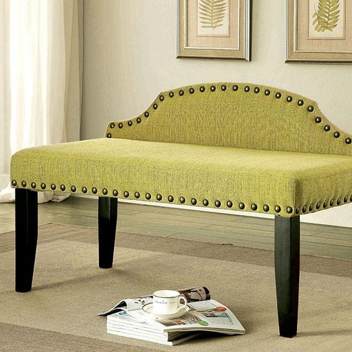 We love how this contemporary upholstered bench puts the accent on fresh fabric and clean-lined form. Chic and streamlined, its curved back and sle...