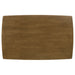 It’s easy to enjoy mid-century modern style in small spaces with this five-piece dining table set. A sleek and simplistic dining table is constructed with a rectangular tabletop and tapered legs, while four chestnut dining chairs incorporate everything that you love about mid-century modern design. The iconic half-moon shaped backrest complements the eye-catching triangular cushion. Each cushion is upholstered in leatherette with tan color. Coming in the same style as a table, four dining chairs are supported on tapered legs.