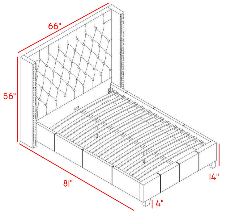 Elegant and eye-catching, the stunning Ashton Bed from Meridian Furniture is the perfect addition to any space. Rich Linen covers the deep tufted design. A beautiful wing bed design is complimented by hand applied chrome nail head details. Strength and beauty is guaranteed with a solid wood frame and legs.