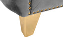 Upholstered in soft grey velvet, this Michelle sofa is sumptuously glamorous. Designed for upscale living, this chair features rich gold nail head trim and gold iron legs that keep it grounded in contemporary beauty. Tufted material covers every inch of this unit, and button tufting ensures that the unit stays plump and comfortable and holds up well to continual use. Pair it with other items in the collection for a cohesive look.