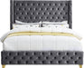 Savan Purple Velvet King Bed - Rich Purple Velvet - Deep Button Tufting - Gold and Chrome Legs Included with Each Bed - Full Slats (No Box Spri...